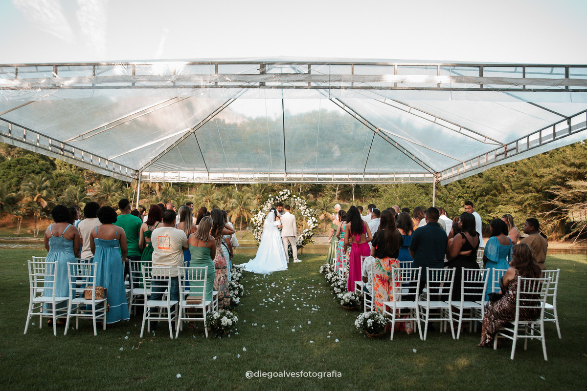 Com um lindo final de tarde, a luz dourada do pôr do sol tornou cada registro ainda mais especial, refletindo a felicidade estampada nos sorrisos do casal e de todos que compartilharam esse dia inesquecível. Entre olhares apaixonados, votos sinceros e abraços calorosos, tivemos a honra de eternizar cada detalhe pelas nossas lentes, capturando a essência desse momento único na vida de Milena e Kennedy.